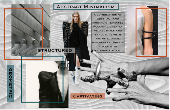 Abstract and Minimalist dresses focusing on a neutral color palette and structure inspired by architectural shapes and forms.